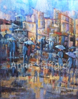 Afternoon Walk, Corfu Town - a pastel by John Patchett. John says "Corfu Town is one of my favourite overseas destinations. This is a typical scene of one of the many interesting backstreets in Corfu."