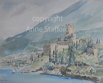 Malcesine, a pen and wash by Christine Anne Stafford.